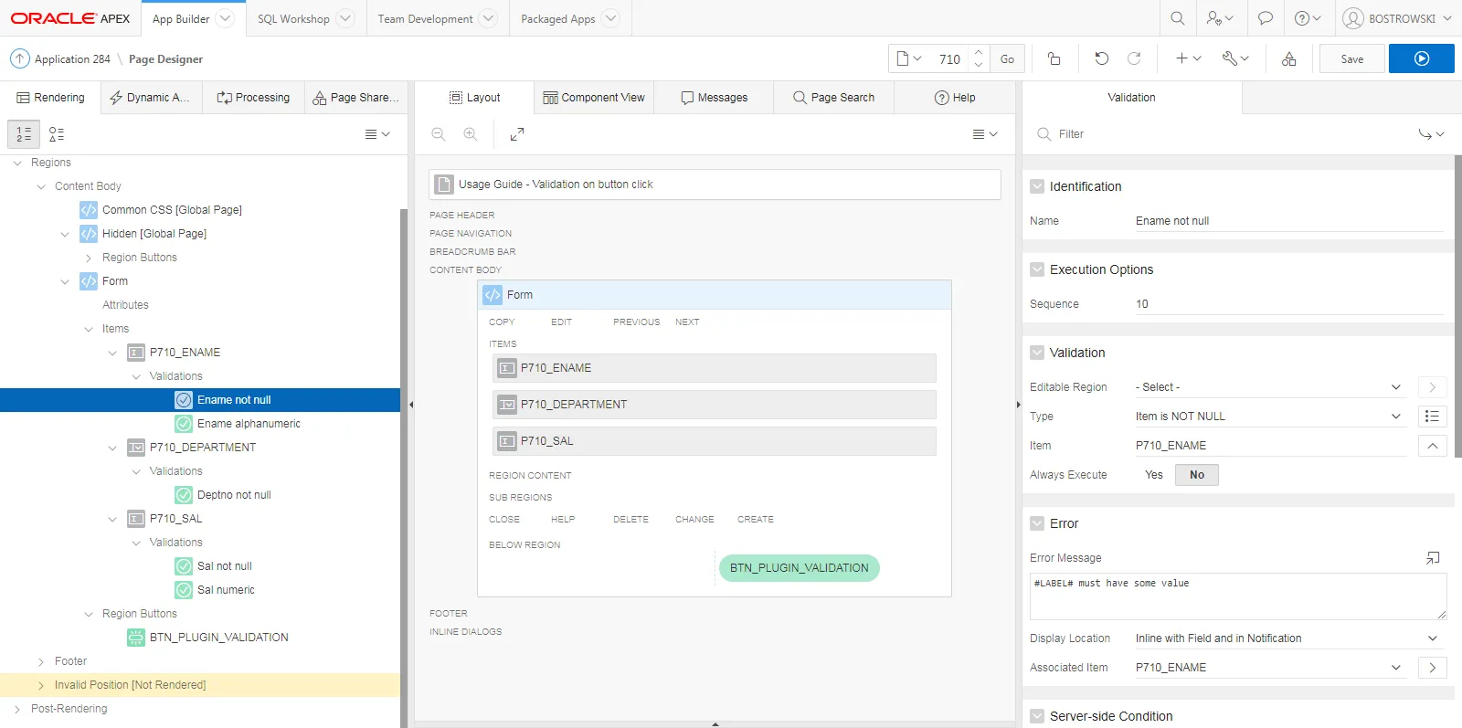 | P710/_ENAME | Item is NOT NULL |