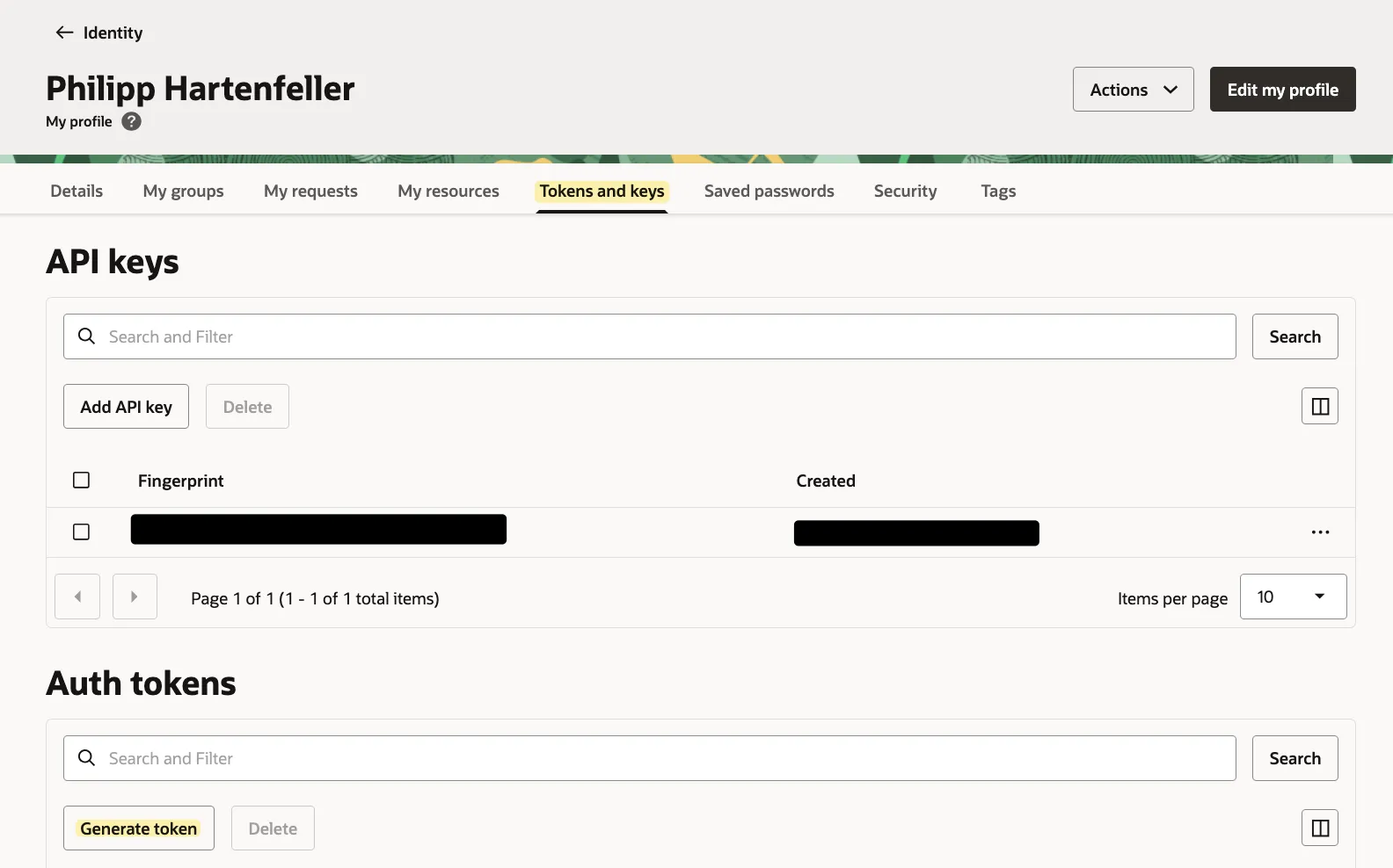 Section titled “Store credentials in the database”Now we need to enter the auth token into the database. Choose any credential name. The username is the email address of your OCI account. Click on the profile icon and on the email entry. On the page there is a username field.