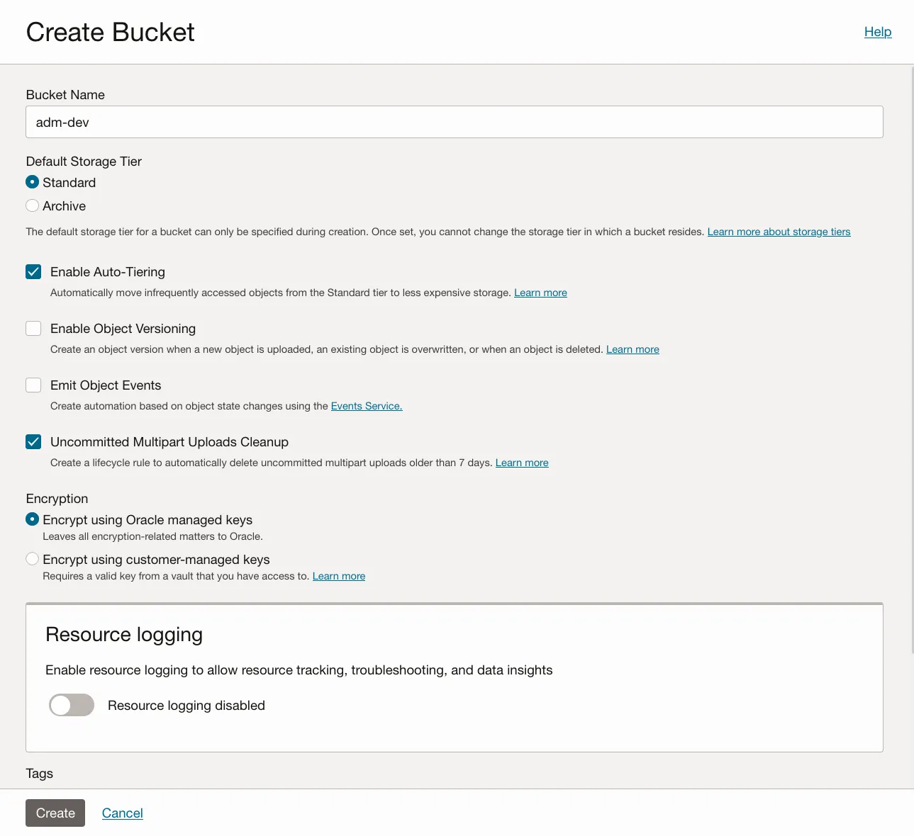 Section titled “Setting Up Object Storage in OCI”Create Bucket