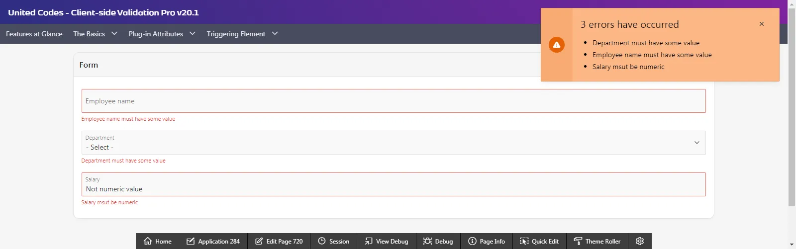 Examples of how the plug-in attributes can be used are shown and described in the Client-side Validation Pro sample application.
