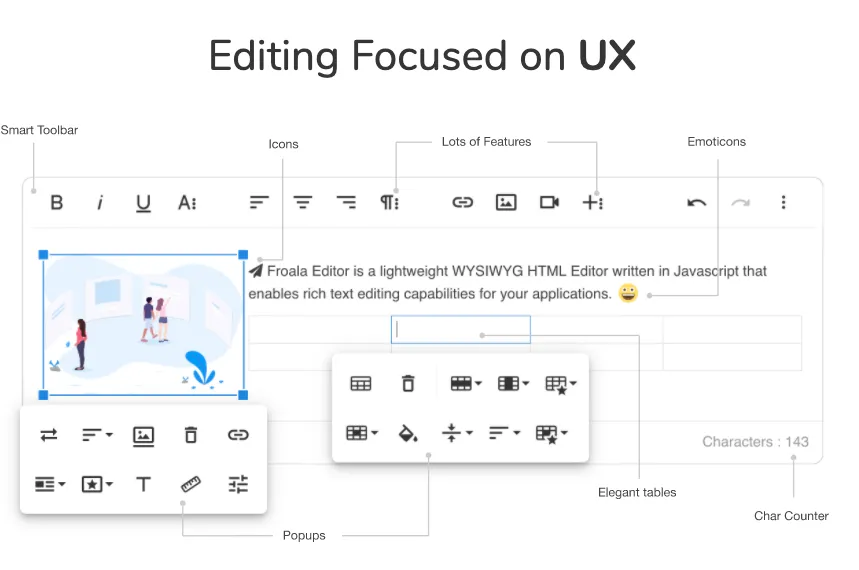 - Integration with Third-Party Plugins: The Rich Text Editor Pro seamlessly integrates with third-party plugins such as codox.io for real-time collaboration, WProofreader WebSpellChecker for advanced spell checking, and TOAST UI Image Editor for image editing capabilities. With TOAST UI Image Editor, end-users can edit images directly in the browser, adding text, shapes, cropping, resizing, rotating, and more. This integration enhances user engagement and empowers users to create visually compelling content without the need for external editing tools.